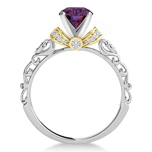 (1.12ct) 14k Two-Tone Gold Alexandrite and Diamond Antique-Style Engagement Ring