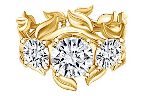 Adds A Touch Of Nature-Inspired Beauty To Your Look 1.75 Carat Round Shape Natural Diamond Three Stone Leaf Engagement Ring 14K Solid Gold Makes a Standout Addition to Your Collection