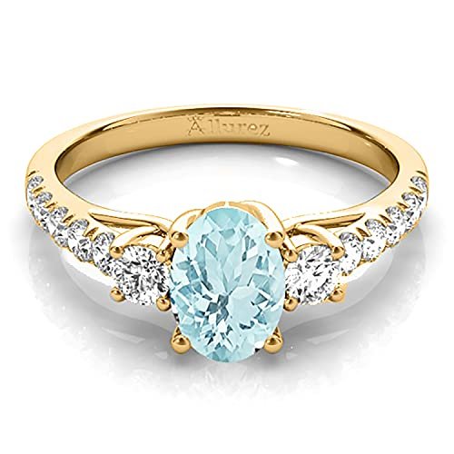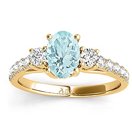 Ask her with confidence with this opulent oval cut diamond and aquamarine engagement ring.