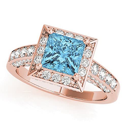 14k Gold (2.25ct) Princess Cut Blue Topaz and Diamond Halo Engagement Ring