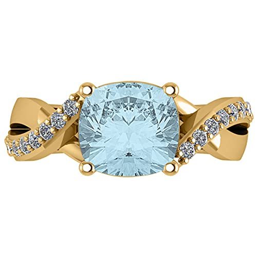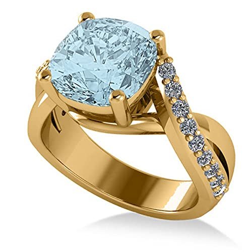 14k Gold Twisted Cushion Aquamarine Engagement Ring (4.16ct)