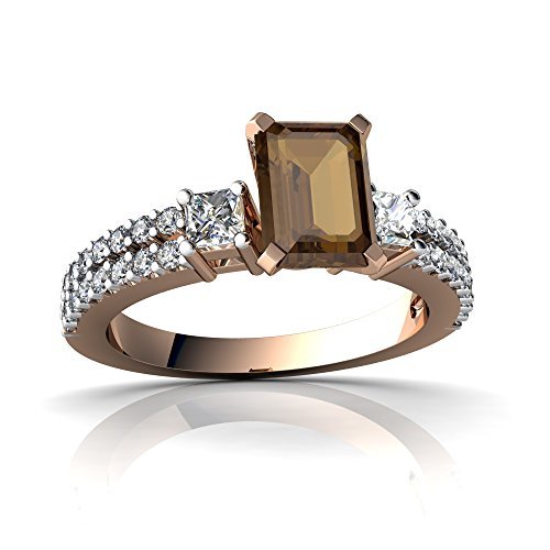 14kt Rose Gold Smoky Quartz and Diamond 7x5mm Emerald_Cut Engagement Ring – Size 7