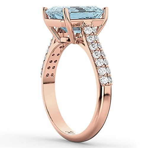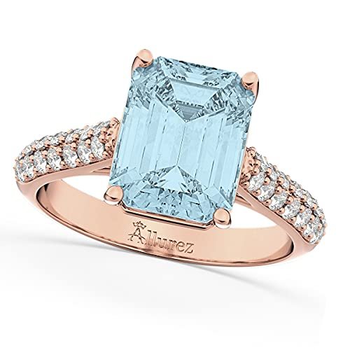 18k Gold (5.542ct) Emerald Cut Aquamarine and Diamond Engagement Ring