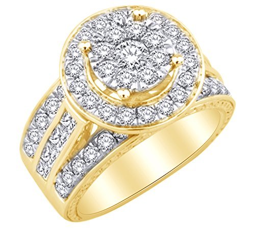 AFFY 2.5 Carat White Natural Diamond Cluster Halo Engagement Ring in 14k Solid Gold
