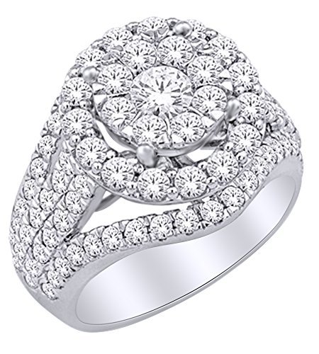 AFFY 2.5 Ct White Natural Diamond Cluster Halo Engagement Ring in 14k Solid Gold