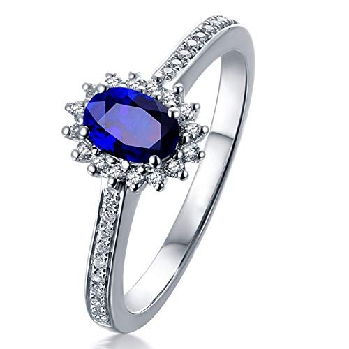 AMDXD Wedding Rings for Women, Wedding Ring 18K Gold Diamond Sunflower with Oval Sapphire 0.56/1.04/1.5/2ct,White Gold…