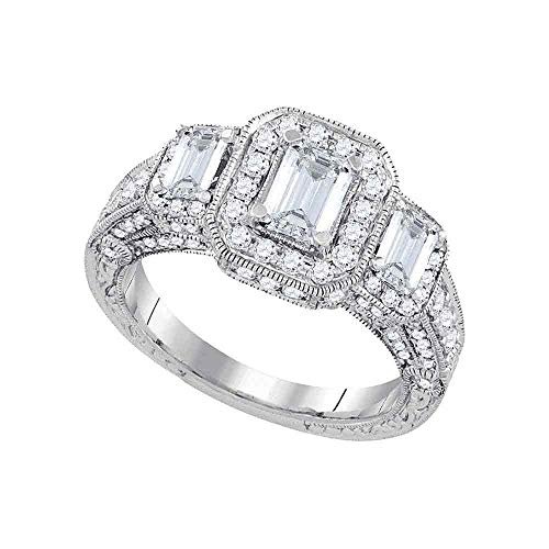 Dazzlingrock Collection 14kt White Gold Womens Emerald Diamond 3-stone Bridal Wedding Engagement Ring 2.00 ctw