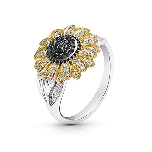 Drishya Fashion 3.30 Ct Round Cut Simulated Black & White Diamond Sunflower Engagement Wedding Ring 14k Two Tone Gold…