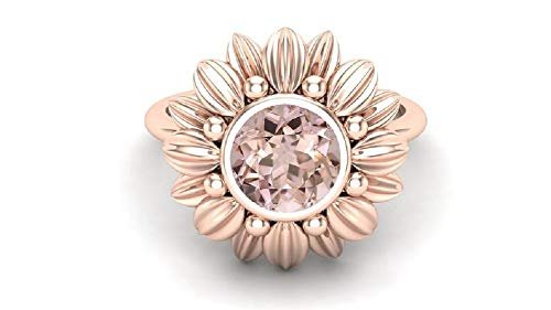 DRISHYA FASHION Round Cut Simulated Peach Morganite Sunflower Beautiful Engagement Ring 14k Rose Gold Plated 925…