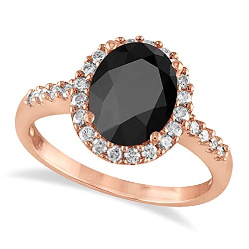 Ladies Oval Onyx and Halo Diamond Engagement Ring 14k Rose Gold 3.02ct