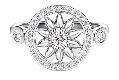 Sparkle jewels 0.40 CT Round Cubic Zirconia Sunflower Halo Engagement Ring 14k White Gold Finish